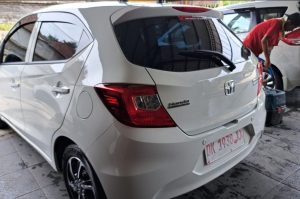 The Brio Satya looks especially elegant in white — a color that helps keep the cabin cooler under Bali sun and photographs beautifully against beach and rice-field backdrops. White also projects a clean, modern rental-fleet image.